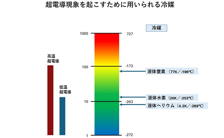 その後1990年頃に、マイナス173℃でも超電導が発生する高温超電導材料が発見されました。マイナス173℃は、液体ヘリウムより安価で豊富な液体窒素で冷やしても実現可能な温度です。しかし一方で、高温超電導材料は低温超電導材料の20倍から30倍ほど高価であることや、液体窒素でも冷やし続けるには電気代がかかることから、なかなか社会実装が進まなかったのだと言います。